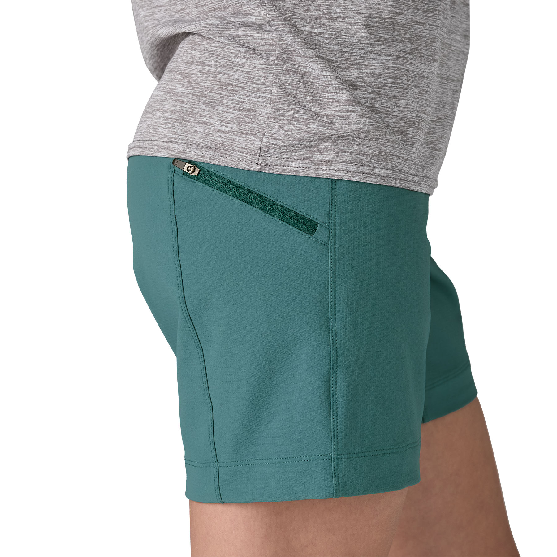 Fabric is built from 92% recycled nylon/8% spandex double weave that's stretchy, breathable and trail-tough; with a durable water repellent (DWR) finish made without intentionally added PFAS to shed light moisture