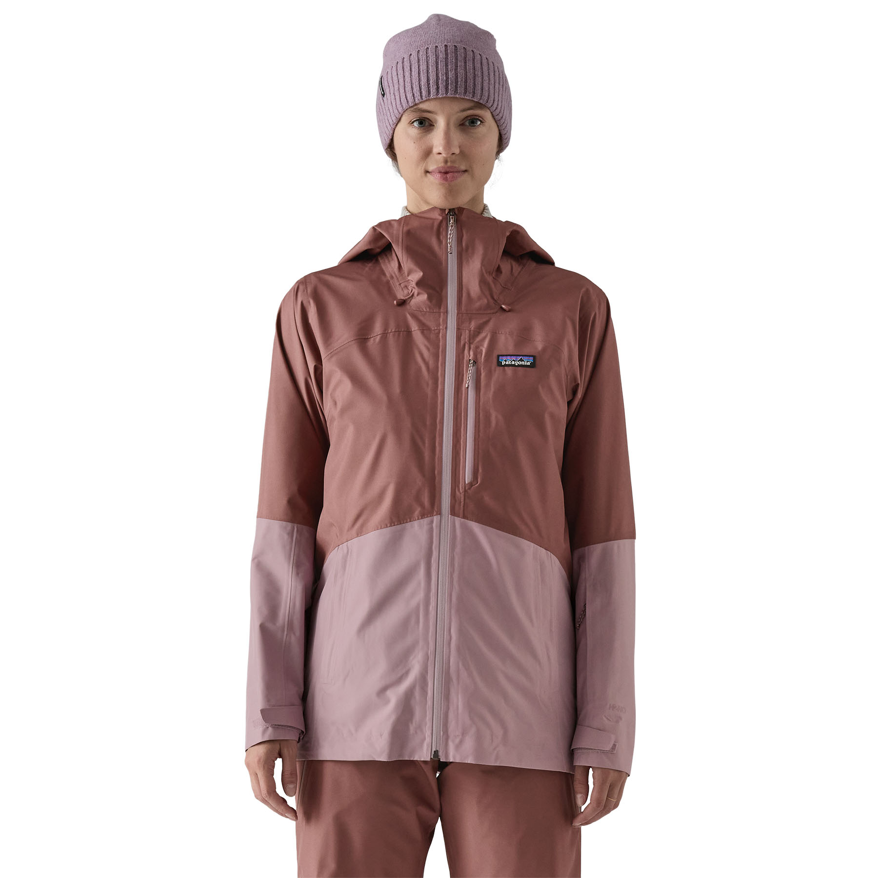 (hood, upper body and powder skirt) 2.2-oz 100% recycled polyester taffeta with a HeiQ® Eco Dry PFC-free DWR finish; (lower body) 3.8-oz 100% recycled polyester tricot mesh